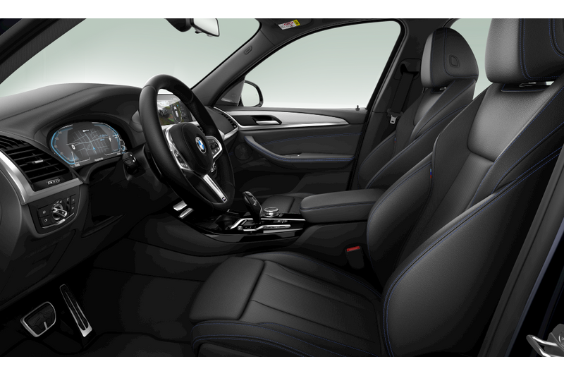 Met Driving Assistant Plus (S5ATA) en Parking Assistant Plus (S5DNA) biedt deze X3 uitgebreide rij- en parkeersondersteuning. Active Protection (S5ALA) verhoogt de veiligheid, terwijl Adaptief onderstel (S223A), Performance Control (S2VGA) en Variable Sport Steering (S2VLA) zorgen voor optimale stabiliteit en dynamiek. Extra zekerheid wordt geboden door Bandenspanningsweergavesysteem (S2VBA), Alarmsysteem klasse 3 (VbV/SCM) (S302A), Deactivering passagiersairbag (S5DAA), Actieve voetgangersbescherming (S8TFA) en Akoestische voetgangersbescherming (S4U9A).