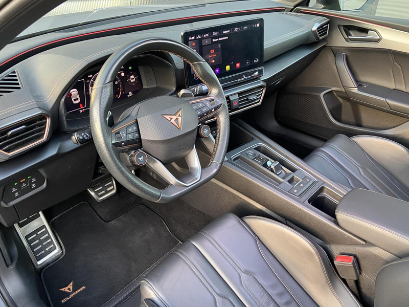Prachtige Cupra Leon ST VZ. Uitgevoerd in de kleur Graphene Grijs, 19 inch lichtmetalen velgen, Brembo remmen en een panorama dak waardoor deze auto zeer sportief uitstraalt. Dat zien we vervolgens terug in het interieur welk is voorzien van sportieve schaalstoelen, digitaal cockpit en sfeerverlichting. Onder de motorkap bevindt zich een krachtige 2.0L motor welke een vermogen levert van 310pk. Dit vermogen word doormiddel van een DSG-automaat overgebracht op de vierwielaandrijving. Om het comfort te optimaliseren is de Cupra voorzien van adaptieve cruise controle, lane assist, dode hoekdetectie, achteruitrijcamera, grootlicht assistent, regensensor, apple carplay, Beats audio, elektrische achterklep en een elektrisch uitklapbare trekhaak.