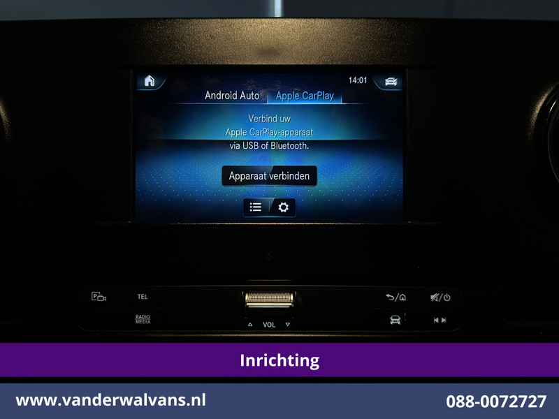 164pk sterke Sprinter L2H1 Nieuw model Euro6 met airconditioning, inrichting en 2800kg Trekhaak. Geheel dealer onderhouden en uitgevoerd met camera, apple carplay, android auto, cruisecontrol, parkeersensoren en bluetooth telefoonvoorbereiding.