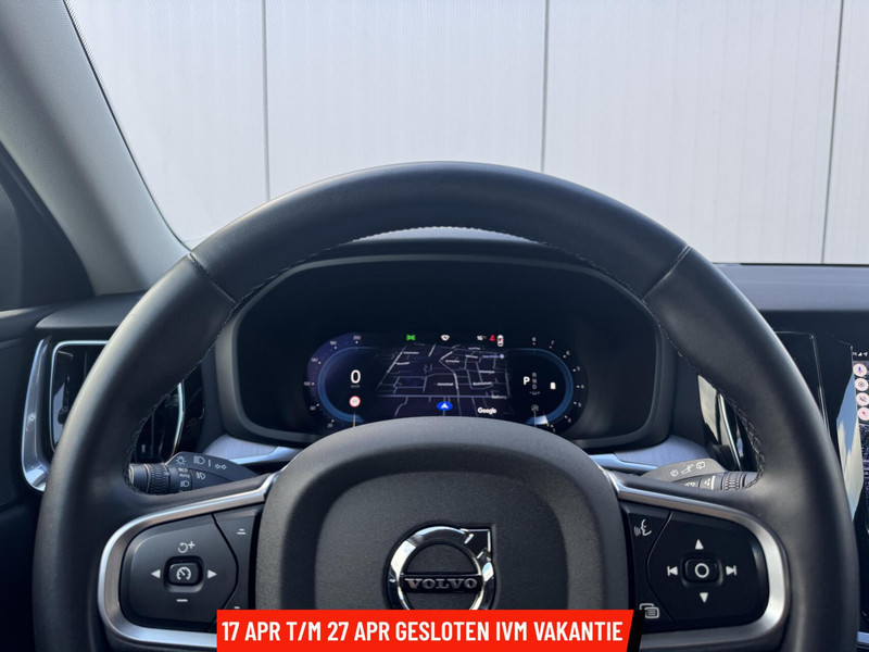 Binnenin ervaar je direct de verfijnde Scandinavische kwaliteit waar Volvo om bekendstaat. De climate control zorgt voor een aangenaam binnenklimaat, terwijl zowel de voorstoelen, achterbank als het stuurwiel verwarmd zijn — ideaal tijdens koude dagen. Ook is de voorruit verwarmd zodat de voorruit krabben verleden tijd is. Het infotainmentsysteem ondersteunt Apple CarPlay en Android Auto, en via het navigatiesysteem vind je moeiteloos je weg.