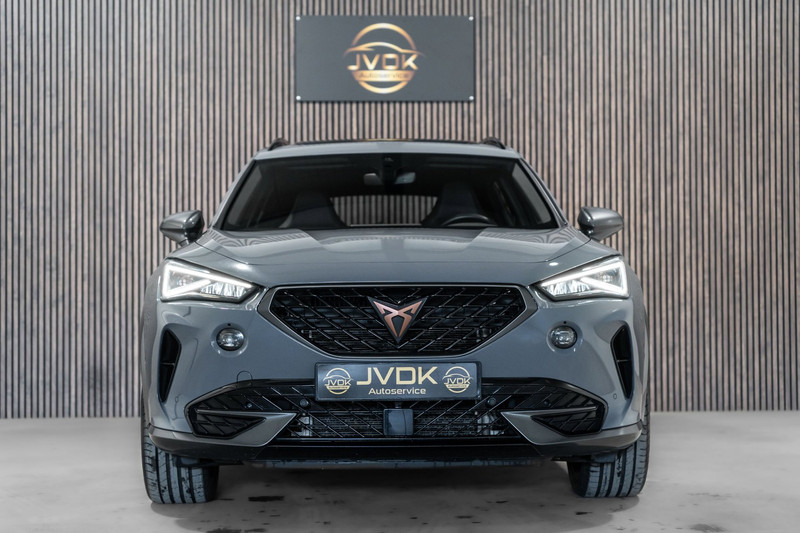 Laat u niets wijsmaken, deze Cupra Formentor biedt alles wat u van een auto verlangt. De aandrijving van deze Cupra wordt verzorgd door een viercilinder motor en een automatische transmissie. Het lederen interieur springt meteen in het oog; maar wat dacht u van het ultragemakkelijke elektrisch bediende glazen panorama dak en de elektrisch bedienbare achterklep? Koude start? Niet met de verwarmbare voorstoelen! Nooit meer koude handen of koude vingers in de auto. Stuurverwarming zorgt ervoor dat het stuur behaaglijk warm aanvoelt. Dankzij de matrix LED-verlichting geven de koplampen ook in het donker daglicht. Bij de uitrusting van deze Cupra horen onder meer extra getint glas, in delen neerklapbare achterbank, LED-achterlichten, verstelbare lendensteunen en snelheidsafhankelijke stuurbekrachtiging.