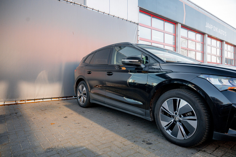 Hij levert uitstekende prestaties en doet dat met zorg voor het milieu. Maar tegelijk is de ŠKODA Enyaq iV ook gewoon een auto die u volop ruimte en comfort biedt. De fluisterstille elektromotor zorgt voor een serene rijervaring. Een krachtige motor geeft deze auto zijn sportieve prestaties. Topklasse: daar hoort leren bekleding absoluut bij. Ook 19 inch lichtmetalen velgen, LED koplampen, in hoogte verstelbare passagiersstoel, in delen neerklapbare achterbank, LED-achterlichten en verstelbare lendensteunen horen tot de voorzieningen op deze auto.