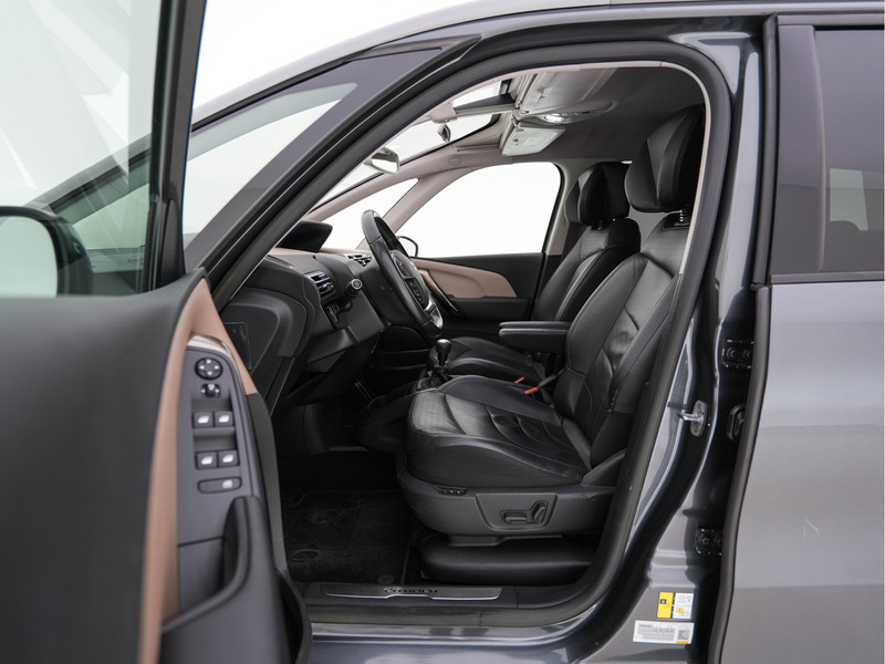 Representatief, sportief, ruim en flexibel. Typisch een volbloed MPV, deze Citroën Grand C4 Picasso. De dieselmotor geeft deze auto sportieve prestaties en zorgt voor een laag brandstofverbruik. De leren bekleding maakt het interieur helemaal af! Behaaglijk onderweg zijn? Als bestuurder geniet u van de verwarmbare voorstoelen met massagefunctie. Net als uw bijrijder! Een goede zithouding is essentieel voor een fitte rit. Daarom is deze auto uitgerust met comfortstoelen. De bagageruimte is toegankelijk via een comfortverhogende elektrische achterklep. Extra passagiers? Geen enkel punt. In één simpele handeling creëert u een derde zitrij. Tot de uitrusting behoren ook LED-dagrijverlichting, donker getint glas achter, LED-achterlichten en verstelbare lendensteunen.