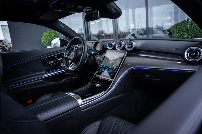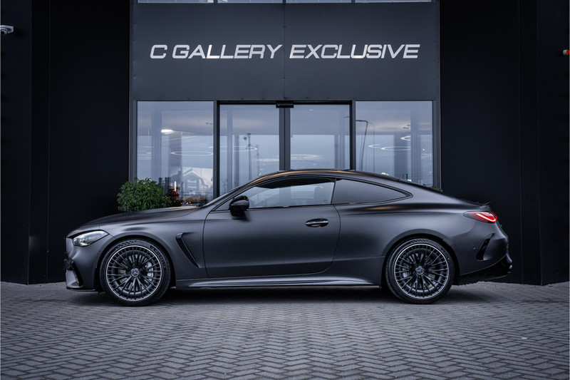 Het exterieur valt direct op door een krachtige, atletische aanwezigheid met de kenmerkende AMG-stijl. Brede wielkasten, een scherp gelijnde carrosserie en AMG-specifieke accenten geven de coupé een dynamische en zelfverzekerde uitstraling die de sportieve intenties van de auto perfect weerspiegelt.