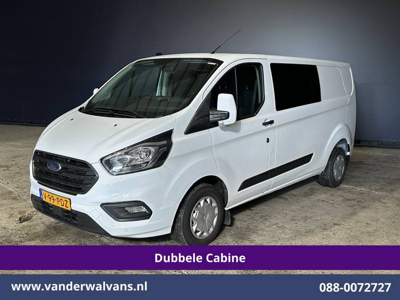 131pk sterke Ford Transit Custom L2H1 Euro6 dubbel cabine met airconditioning en 5 zitplaatsen. Dealer onderhouden en voorzien van LED, inrichting, cruisecontrol, parkeersensoren, stoelverwarming, achterklep en bluetooth telefoonvoorbereiding.