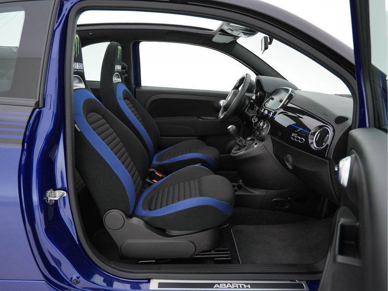 ✔ Interieurdetails: Naast de unieke zwart-blauwe stoffen bekleding , heeft de autoa speciale logo (zoals het Monster Energy Yamaha MotoGP-logo op het startscherm van het infotainmentsysteem) en het Abarth Telemetriesysteem om prestaties te meten.
