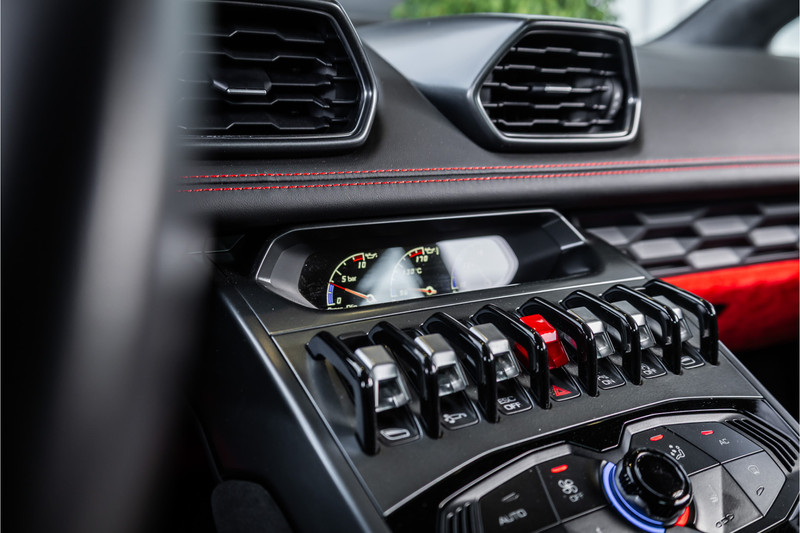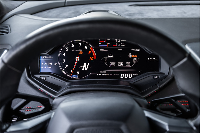 Het LP610-4 vierwielaandrijvingssysteem brengt die 610 pk met verbluffende effectiviteit naar het asfalt — zodat de Huracán niet alleen spectaculair is in rechte lijn, maar werkelijk buitengewoon is wanneer het wegdek krom wordt. De zeventraps dubbelkoppelingsversnellingsbak reageert in milliseconden op elke opdracht via de stuurwielflippers, terwijl het rijdynamische systeem LDVI de auto in elke situatie perfect in balans houdt. Snel genoeg voor het circuit. Beheersbaar genoeg voor de bestuurder die er elke dag mee wil rijden. En dat is precies waar de Huracán zo uitzonderlijk in is.