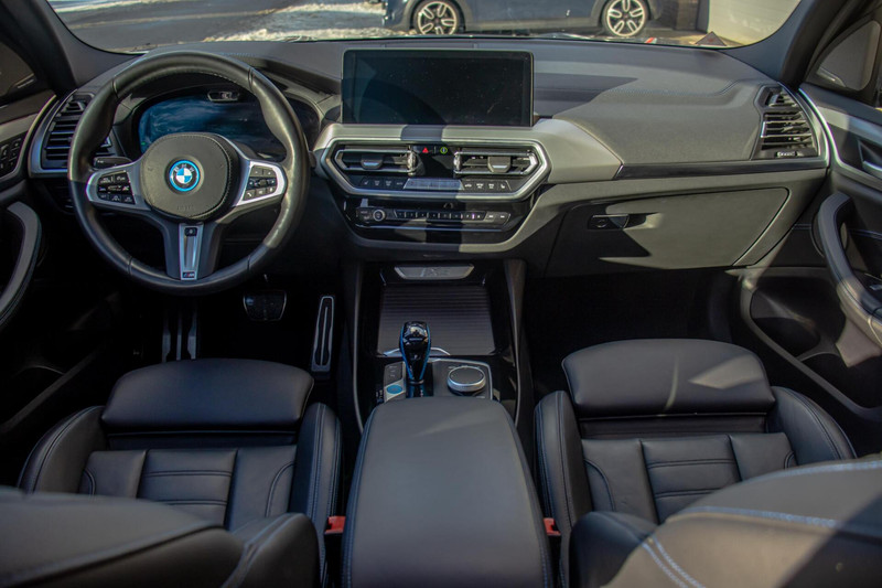 Binnenin biedt de iX3 een hoog niveau van comfort en afwerking. Het lederen interieur straalt luxe uit en is voorzien van elektrisch verstelbare stoelen met geheugenfunctie. Zowel de stoelen als het stuurwiel zijn verwarmd, wat het comfort in koudere maanden aanzienlijk verhoogt. De ambient verlichting draagt bij aan een prettige sfeer tijdens elke rit. Het Harman Kardon audiosysteem zorgt voor een uitstekende geluidsbeleving, terwijl Apple CarPlay, het digitale instrumentenpaneel en het overzichtelijke infotainmentsysteem zorgen voor moderne connectiviteit en gebruiksgemak.
