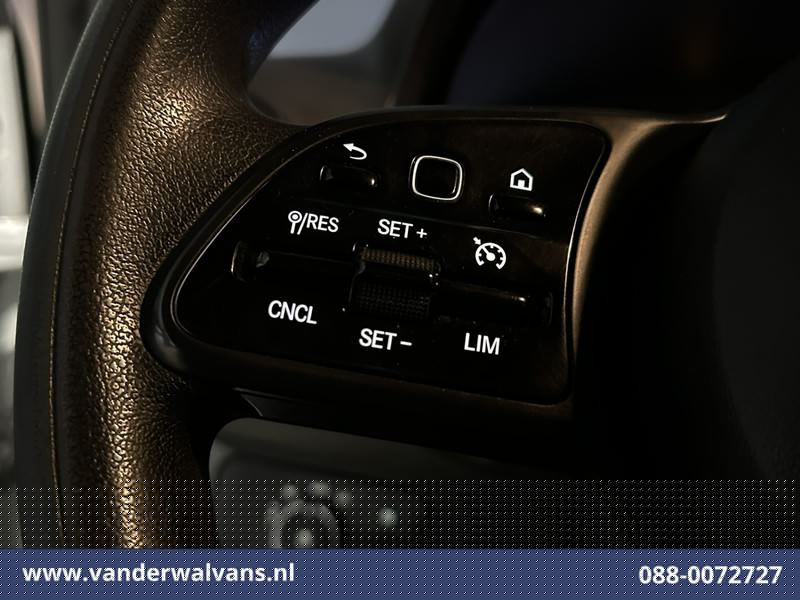 164pk sterke Sprinter L2H2 Euro6 met airconditioning, inrichting en 3500kg trekhaak. Dealer onderhouden en voorzien van camera, Apple Carplay, Android Auto, cruisecontrol, parkeersensoren en bluetooth telefoonvoorbereiding.
