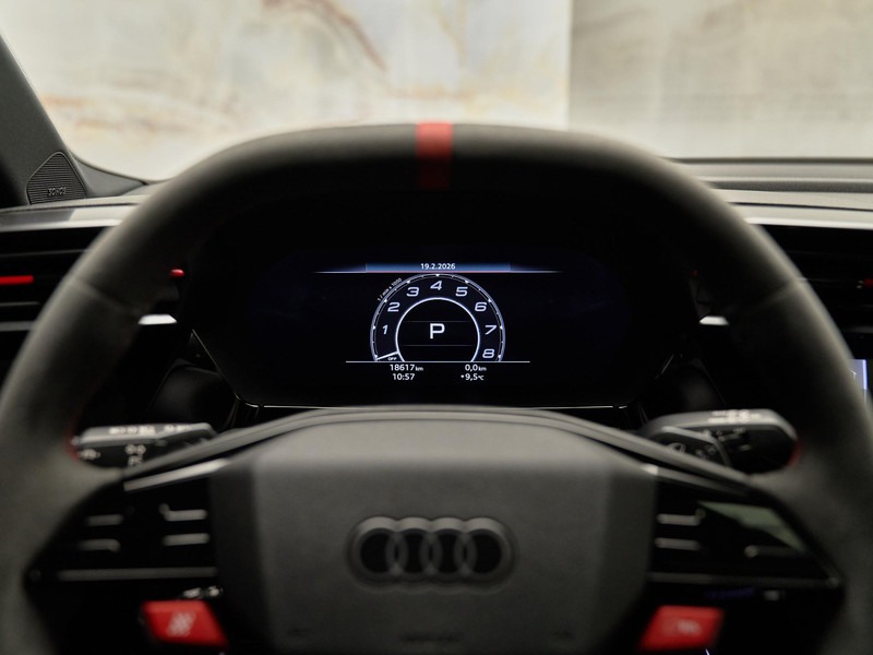 Deze Audi RS3 combineert sportiviteit met hoogwaardig comfort. De Comfortsleutel zonder safelock (4K5) maakt instappen en starten eenvoudig zonder de sleutel actief te gebruiken, terwijl de Achterklep met comfortopening (4E6) extra gebruiksgemak biedt bij het in- en uitladen. Binnenin zorgt de Climatronic met bediening achterin (KH5), aangevuld met het Climate control package plus (PYC), voor een aangenaam interieurklimaat onder alle omstandigheden. Het Lichtpakket pro met ambient lighting (QQ3) creëert een exclusieve sfeer in het interieur, volledig in lijn met het premium karakter van de RS3.