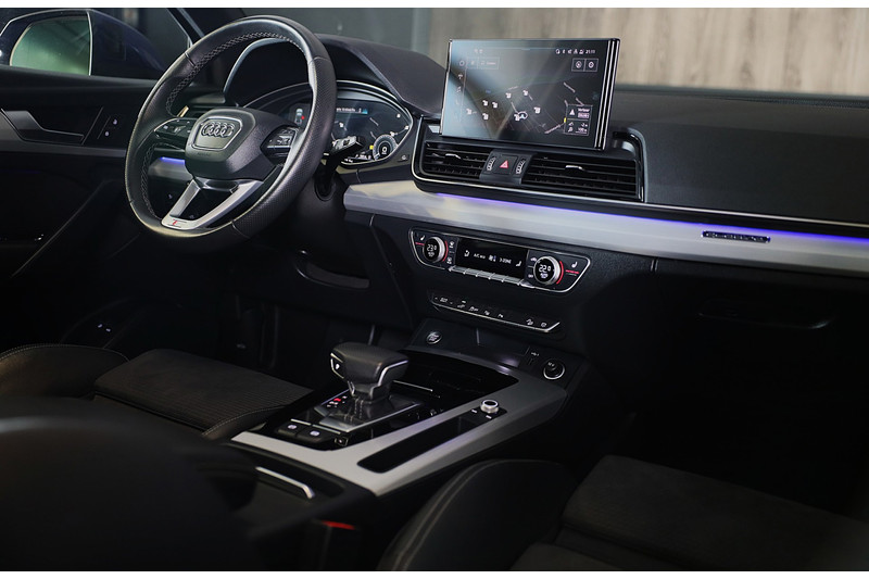 Met een auto als deze Audi Q5 komt u absoluut goed voor de dag. Deze auto wíl gewoon gezien worden: kijk maar naar de sportieve AMG Line Exterieur. De uitstekende prestaties van deze auto komen van de viercilinder motor en de automatische transmissie. Dat noemen ze nou een ruimtelijk effect: het elektrisch bediende glazen panorama dak, dat net zo gemakkelijk open en dicht gaat als de elektrisch bedienbare achterklep. En ondertussen het ware luxegevoel van het lederen interieur. Bestuurder en bijrijder krijgen een warm welkom: de verwarmbare voorstoelen zijn bovendien voorzien van massagefunctie. Zit u goed? De stoelen zijn eenvoudig instelbaar dankzij de elektrische bediening met geheugen. Het elektrische cabriodak opent snel en soepel. Zo geniet u maximaal van elke kilometer die u open rijdt. Daglicht bij nacht? De koplampen met matrix LED-verlichting zorgen ervoor. Tot de uitrusting behoren ook 22 inch lichtmetalen velgen, AMG Line Exterieur, warmtewerend glas, zwarte hemelbekleding, in delen neerklapbare achterbank en LED-achterlichten.