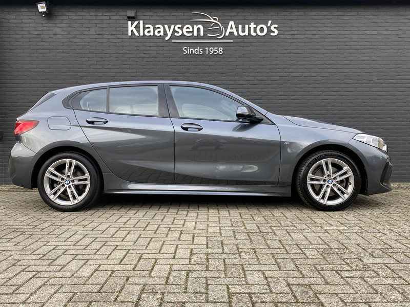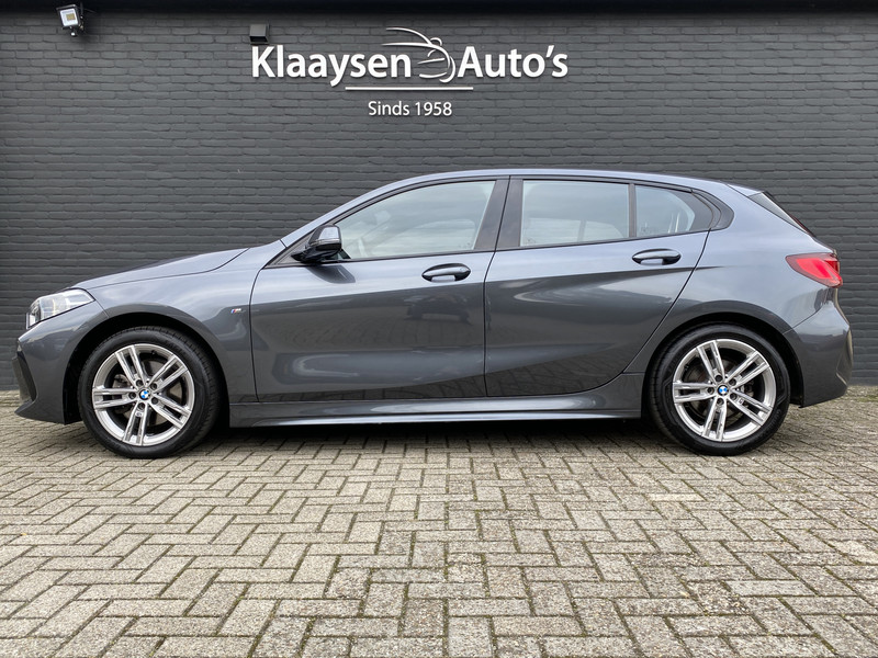 Bijzonder fraaie en luxe BMW 1-serie 116i M Sport benzine uitvoering in de kleur mineralgrau metallic!