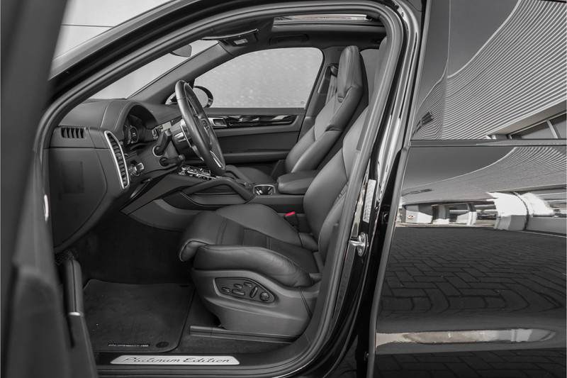 Autobedrijf Schouten biedt u deze Porsche Cayenne 3.0 E-Hybrid Platinum Edition aan, origineel Nederlands en afkomstig van de eerste eigenaar. Het exterieur van de Porsche Cayenne is uitgevoerd in de diepe metallic kleur: 'Chromitschwarz', gecombineerd met een zwart vol lederen interieur. Verder beschikt de Porsche Cayenne 3.0 E-Hybrid Platinum Edition over een mooie lijst met opties. Denk hierbij aan opties zoals: