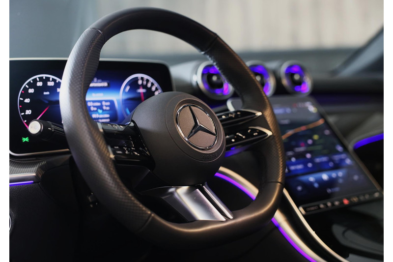 Alle technologie in de Mercedes-Benz CLE Coupé is er op gericht om uw rit veilig en gemakkelijk te laten verlopen. De AMG Line Exterieur accentueert het sportieve karakter van deze Mercedes-Benz. Een viercilinder motor en een automatische transmissie zorgen voor de uitstekende prestaties van deze auto. Het lederen interieur springt meteen in het oog; maar wat dacht u van het ultragemakkelijke elektrisch bediende glazen panorama dak en de elektrisch bedienbare achterklep? Neem plaats op de comfortabele stoelen. Dankzij de elektrische bediening en het geheugen is het eenvoudig om hierin de beste zitpositie te vinden. Het blijft een indrukwekkend schouwspel als de elektrisch bedienbare kap opent en sluit. Nooit meer koude handen of koude vingers in de auto. Stuurverwarming zorgt ervoor dat het stuur behaaglijk warm aanvoelt. De slimme koplampen gebruiken de allernieuwste matrix LED-verlichting. Altijd maximaal zicht, nooit verblinding bij de tegenligger. Tot de uitrusting behoren ook 19 inch lichtmetalen velgen, AMG Line Exterieur, zwarte hemelbekleding, extra getint glas, neerklapbare achterbank en verstelbare lendensteunen.