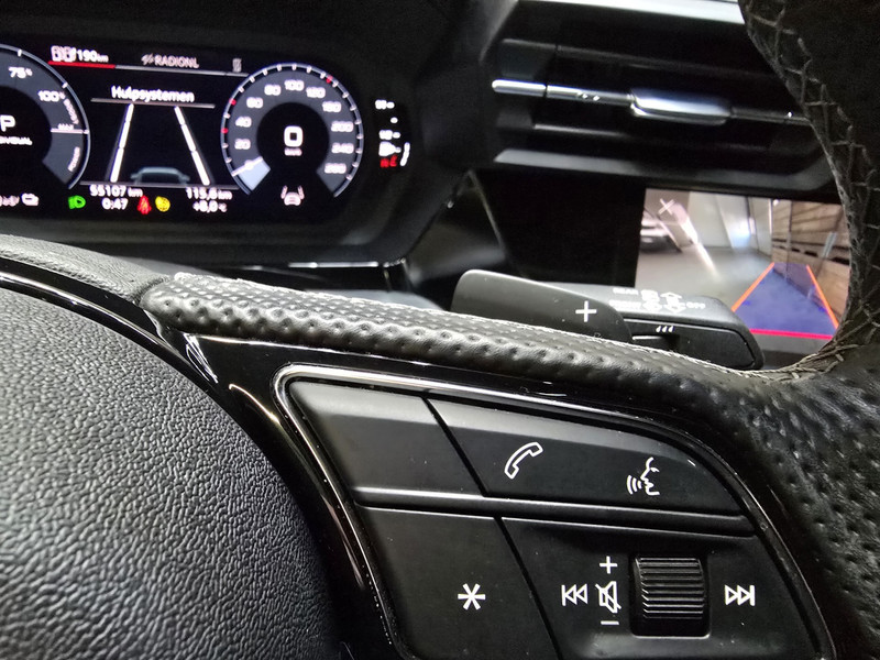 Binnenin geniet je van alle luxe dankzij elektrisch verstelbare lederen stoelen met geheugenfunctie en stoelverwarming, een glazen panoramadak voor een zee van licht en een high-end premium audio-installatie. Het volledig digitale instrumentenpaneel en het head-up display zorgen ervoor dat je alles eenvoudig in het vizier hebt. Ook praktisch scoort deze A3 hoog met een elektrisch bedienbare achterklep, afneembare trekhaak en een achteruitrijcamera.
