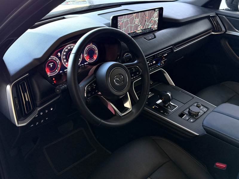 De Mazda CX-60 Homura heeft dankzij extra voorzieningen een sportieve uitstraling. De stoelen van zwart leder, de sfeerverlichting en vloerverlichting achterin maken het interieur zo aantrekkelijk dat je altijd weer graag achter het stuur wilt kruipen.