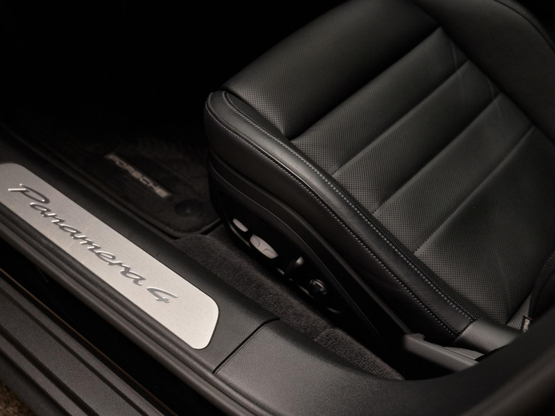 Het interieur van deze Panamera 4 E-Hybrid is gericht op maximaal comfort en hoogwaardige afwerking. De Comfortstoelen (Q2J) zijn 14-voudig elektrisch verstelbaar en voorzien van een memorypakket, waardoor altijd de ideale zitpositie kan worden ingesteld. Voor extra luxe zijn de voorstoelen uitgerust met stoelventilatie (4D3) en is het sportieve karakter benadrukt met een verwarmd GT-sportstuurwiel (2PJ). Het panoramadak (3FU) zorgt voor een lichte en ruimtelijke ambiance in het interieur.