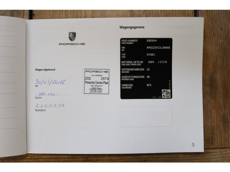 Zowel het interieur als het exterieur van deze Porsche verkeren in absolute nieuwstaat. De auto is afkomstig van de eerste eigenaar en alle boekjes, sleutels en nationale autopas zijn keurig ingevuld en aanwezig. U krijgt dus een complete en goed gedocumenteerde auto.