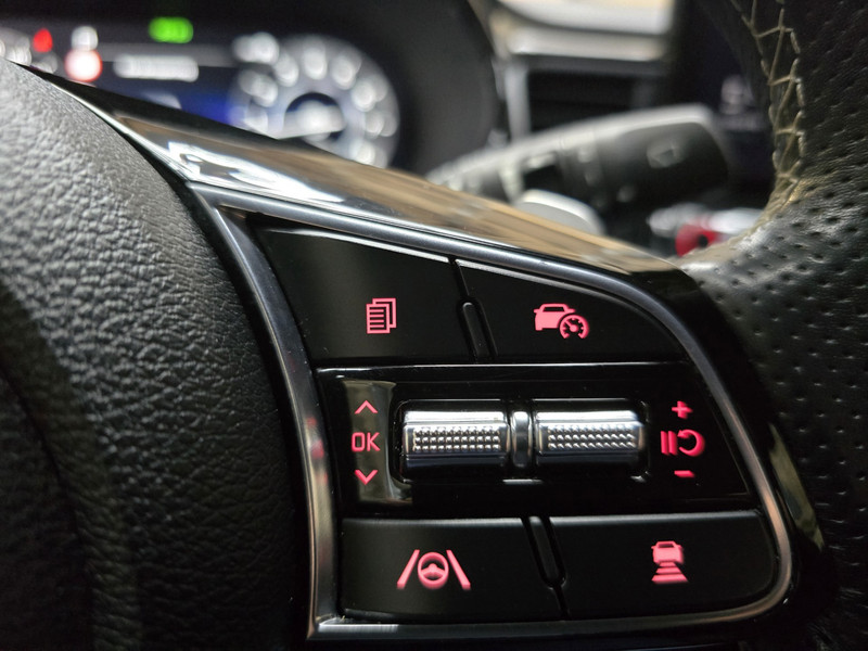 Snelheid, omgevingsinfo, navigatie en communicatie... Het digitale dashboard geeft alles realtime weer. Parkeer en kijk niet om! De achteruitrijcamera doet dat voor u. Adaptive cruise control houdt de ingestelde snelheid vast en houdt automatisch afstand tot uw voorligger. Met uw smartphone maakt u overal contact met de auto. Remote services geven direct inzicht in uiteenlopende functies en zijn op afstand te activeren. Onderweg kunt u veilig genieten van het audiosysteem met DAB-radio en het navigatiesysteem. Want in deze Kia bedient u ze vanaf het stuurwiel of met uw stem. Natuurlijk behoren electronic climate control, draadloos opladen en keyless entry ook tot de uitrusting van deze complete auto.