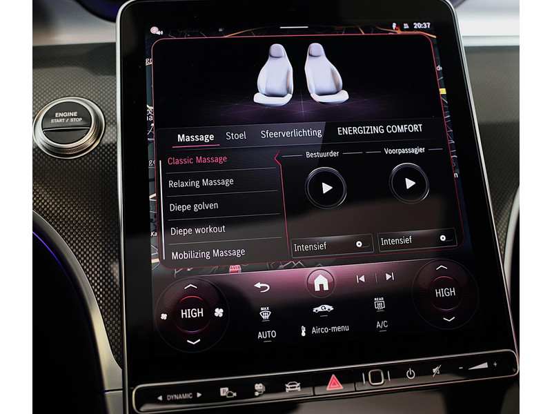 Pas de interface van uw cockpit moeiteloos aan. Het is mogelijk door het digitale dashboard in deze auto. De vier camera's genereren samen een 360 graden beeld rond de auto, zodat u een volledig overzicht hebt van wat er rondom uw auto gebeurt. Adaptive cruise control is veilig en comfortabel. De snelheidsregelaar houdt automatisch afstand tot het voertuig dat voor u rijdt. Had u de auto nou wel afgesloten? Met Connected Services checkt u het overal en altijd. Muziek luisteren wordt genieten met het high performance audiosysteem. Met navigatiesysteem met harde schijf, automatische airconditioning, draadloos opladen, DAB ontvangst, regensensor en keyless entry is deze Mercedes-Benz helemaal compleet.