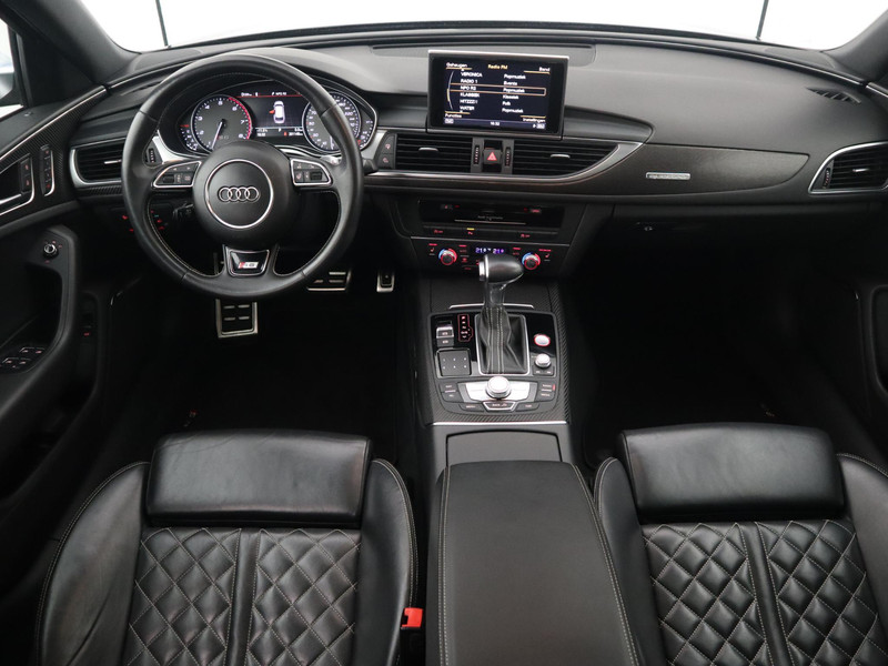 Deze Audi A6 Avant staat garant voor vele veilige en comfortabele kilometers. De S-Line styling geeft een niet te missen uitstraling. De automatische transmissie en de achtcilinder benzinemotor maken het autorijden snel en comfortabel. Deze Audi A6 Avant komt in de luxe uitvoering, inclusief lederen interieur. Op koude en donkere dagen zijn de verwarmbare voorstoelen een uitkomst. De sportstoelen geven het interieur een super strakke look. Een handige voorziening op deze auto is de elektrische achterklep die u op afstand kunt openen. Het interieur baadt in een zee van licht door het glazen panoramadak. De verwarmbare achterbank is een traktatie voor iedereen die achterin plaatsneemt. Bij de uitrusting van deze Audi horen onder meer 21 inch lichtmetalen velgen, LED koplampen, warmtewerend glas, in delen neerklapbare achterbank, verstelbare lendensteunen en snelheidsafhankelijke stuurbekrachtiging.