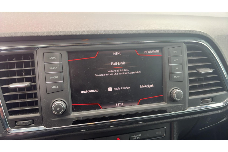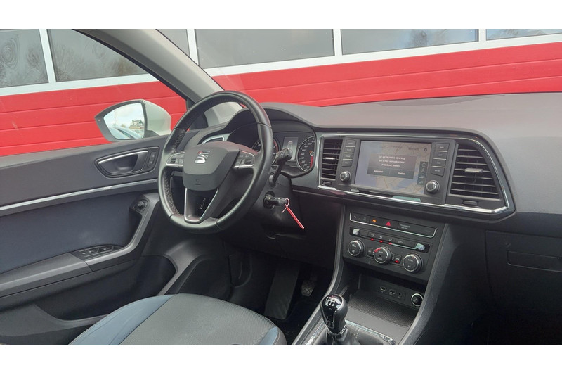 De achteruitrijcamera laat duidelijk zien hoeveel ruimte u nog heeft bij het inparkeren. Uw veiligheid op de weg wordt verhoogd door het audio-installatiesysteem met DAB-ontvangst en het full map navigatiesysteem te bedienen vanaf het stuur of met spraakbediening, zodat uw handen veilig op het stuur blijven en uw ogen gericht zijn op de weg. U verwacht natuurlijk automatische airconditioning in deze auto, en die is er dan ook. Achter het stuur van deze SEAT bent u niet alleen. De auto kijkt als het ware met u mee tijdens de rit. De regensensor schakelt de ruitenwissers in als het nodig is en de automatisch inschakelbare verlichting doet de lichten voor u aan. De cruise control zorgt voor zorgeloos, ontspannen en zuinig rijgedrag. Met buitentemperatuurmeter, automatisch dimmende binnenspiegel, lederen stuur, isofix-aansluiting, centrale deurvergrendeling met afstandsbediening en bagage afdekhoes is deze auto helemaal compleet.