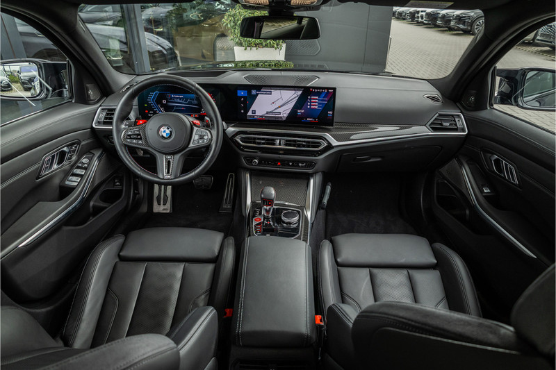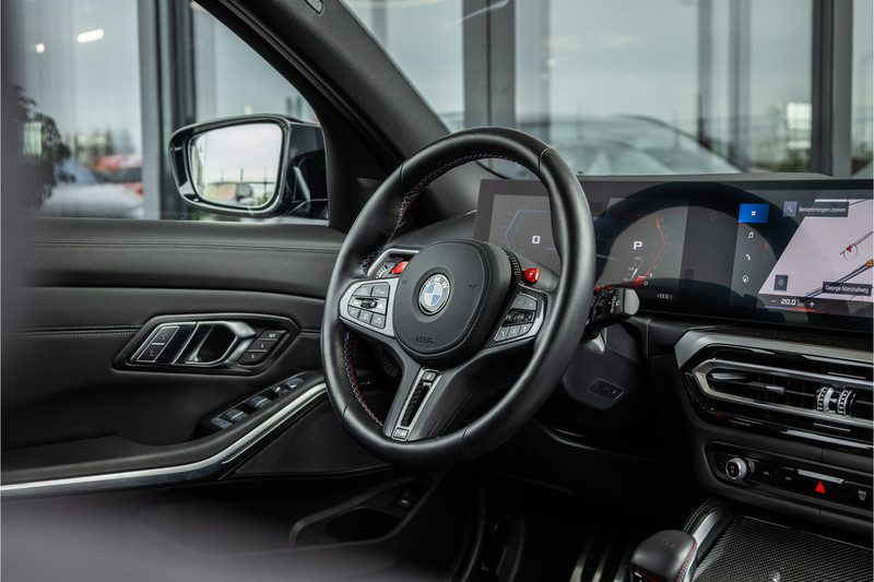 De Competition uitrusting geeft de M3 Touring zijn onmiskenbare identiteit — de agressieve M bumpers, de brede wielkasten, de 19 en 20-inch M smeedwielen voor en achter en het interieur met M sportstoelen, M stuurwiel en koolstofvezel accenten die je herinneren aan waar deze auto vandaan komt en waartoe hij in staat is. Praktisch genoeg om dagelijks te gebruiken. Scherp genoeg om sportwagens van het dubbele prijsniveau achter zich te laten op een kronkelende bergweg. En met een kofferbak die groot genoeg is voor alles wat het weekend van je vraagt.