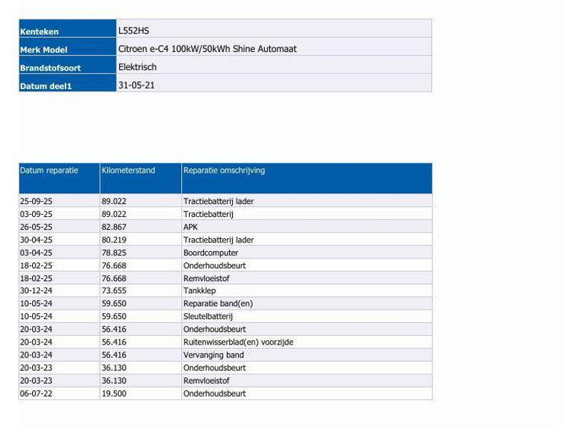 - Onderhoudshistorie aanwezig: Ja