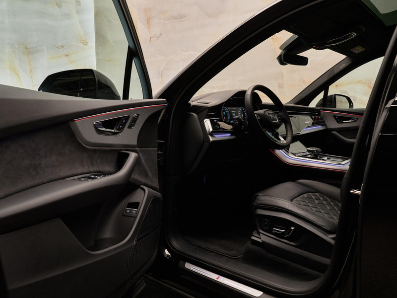 Dit betreft een zeer luxe en sportief uitgevoerde Audi Q7 60 TFSI e Quattro (490 pk) Pro Line S Competition. Kleur: Mythoszwart Metallic (0E0E) en interieur: Leder Valcona met S-logo's en stiksels in ruitpatroon (N0Q). Deze auto heeft slechts 19.455 km gereden en verkeerd in zeer goede staat. Uiteraard is alle documentatie aanwezig. Voorzien van vele opties zoals: