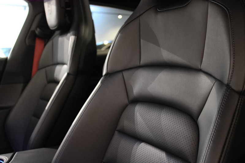 En dan het exterieur... Cherry Red (kersenrood) is de kleur die ervoor zorgt dat deze Taycan echt uniek is. Een diepe metallic rode kleur die in het echt nóg mooier is! Deze kleur, in combinatie met de glanzend zwarte exterieurdetails en de optionele 21-inch wielen, maakt dit een stijlvolle en unieke verschijning.
