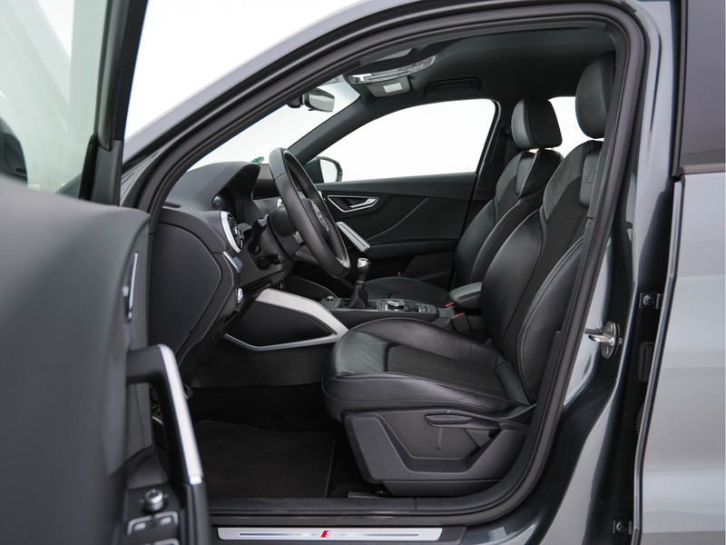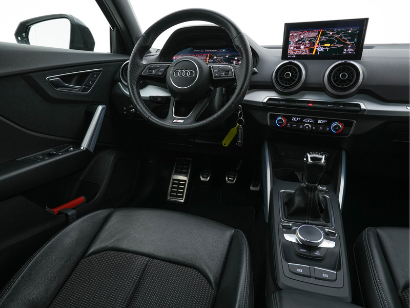Het personaliseren van uw cockpitinterface is mogelijk met het digitale dashboard in deze auto. Ingericht op Connected Services, voor een nog veiligere en comfortabelere rit. Het MMI navigatiesysteem en het audio-installatiesysteem (met DAB-ontvangst!) bedient u met knoppen op het stuur. Zoals van een eigentijdse auto verwacht mag worden, is deze Audi Q2 voorzien van een draadloze oplaadmogelijkheid voor telefoons. Automatische airconditioning verwarmt of koelt het interieur met een druk op de knop. Ook WIFI-hotspot, parkeersensoren achter, regensensor, cruise control, sportstuurwiel en isofix-aansluiting horen tot de voorzieningen op deze auto.