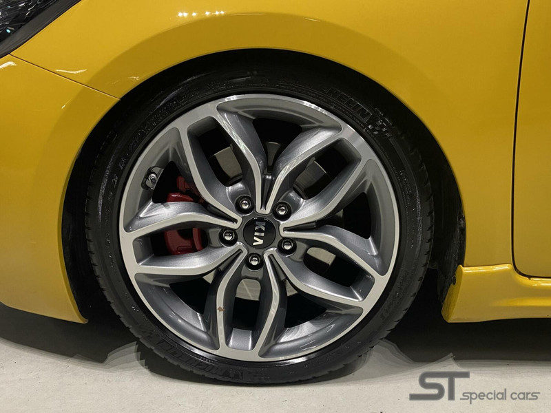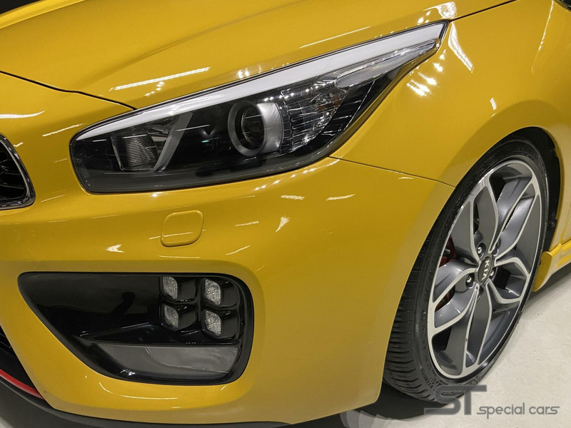 Het verhaal: Op een zonovergoten dag, ergens in het pittoreske stadje Autostad, schitterde een metallic gele Kia Cee'd 1.6 T-GDi GT uit 2016 als een stralende zonnestraal. Met circa 98.750 kilometer op de teller, was deze schitterende bolide volledig full option en in perfecte staat. Het was niet zomaar een auto; het was een symbool van elegantie en kracht, een waar kunstwerk op wielen.