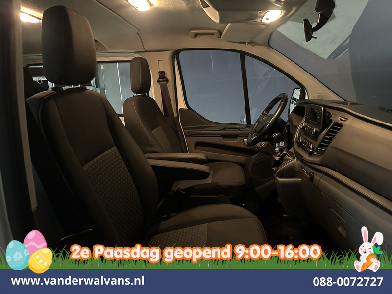 131pk sterke Ford Transit Custom L2H1 Euro6 dubbel cabine met airconditioning en 5 zitplaatsen. Dealer onderhouden en voorzien van LED, inrichting, cruisecontrol, parkeersensoren, stoelverwarming en bluetooth telefoonvoorbereiding.