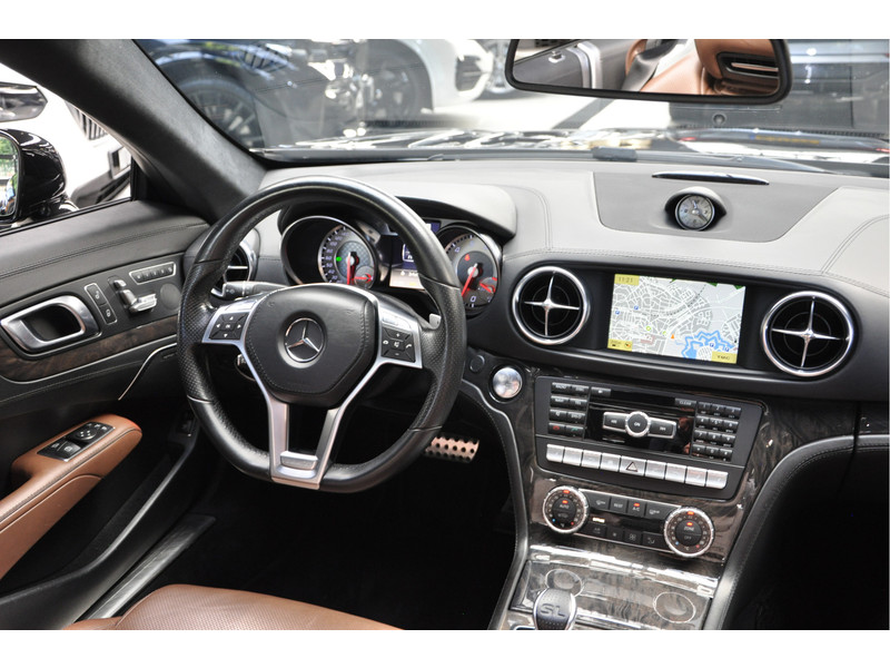 Zodra de zon zich laat zien, kunt u heerlijk genieten achter het stuur van deze cabriolet. Bij het ontwerpen van de Mercedes-Benz SL-klasse stonden uw comfort en uw veiligheid centraal. De AMG-styling accentueert het sportieve karakter van deze Mercedes-Benz. De aandrijving van deze Mercedes-Benz wordt verzorgd door een achtcilinder benzinemotor en een automatische transmissie. Ze zeggen weleens dat stijlvol en handig niet gauw samengaan. In dit geval wel: kijk maar naar het lederen interieur en de elektrisch bedienbare achterklep. U past de stoelen moeiteloos aan, ze zijn elektrisch in te stellen en hebben bovendien een geheugen. Onderweg heeft u extra veel te zien dankzij het glazen panoramadak. Met de krachtige xenonverlichting heeft u optimaal zicht in het donker. Een auto die (even) stilstaat, heeft geen aandrijving nodig en ook geen brandstof. Dus schakelt het start-stopsysteem de motor tijdelijk uit als u moet wachten voor een stoplicht, een trein of een open brug. En als u verder kunt, schakelt het systeem de motor automatisch weer in. Bij de rijke uitrusting horen ook 19 inch lichtmetalen velgen, AMG-styling, sportonderstel, adaptief dempingsysteem, elektrisch inklapbare buitenspiegels en LED-achterlichten.