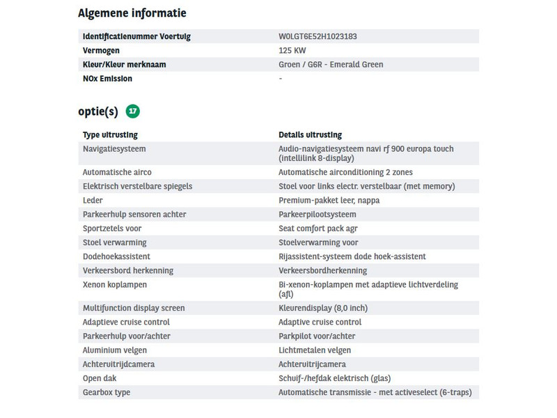 Het kan echter voorkomen dat uit de automatische voertuiginformatie een optie of accessoire naar voren komt die helaas toch niet op de auto aanwezig is.