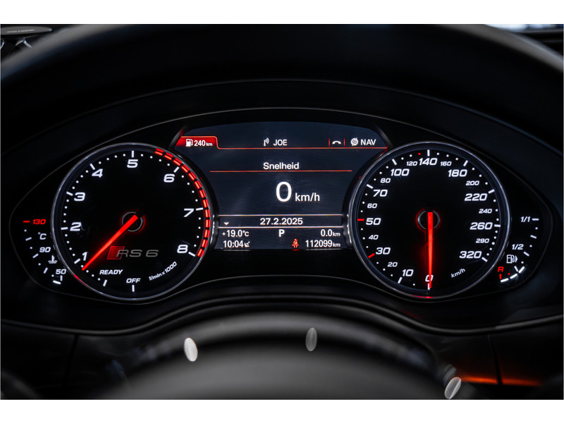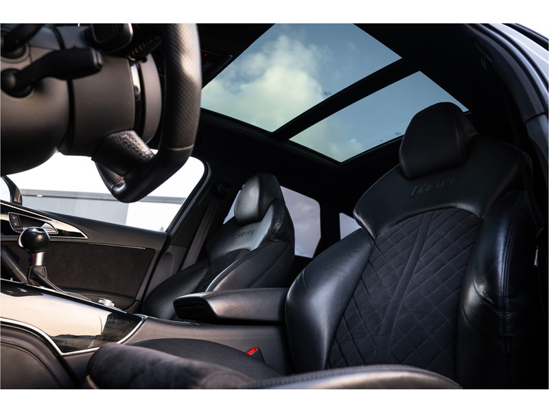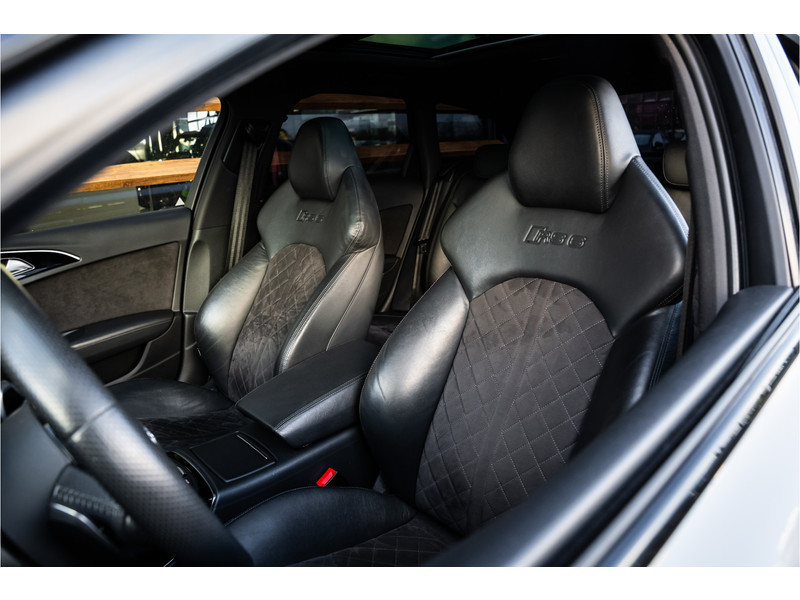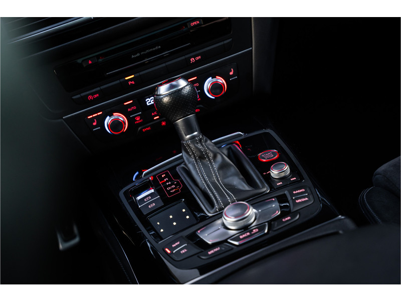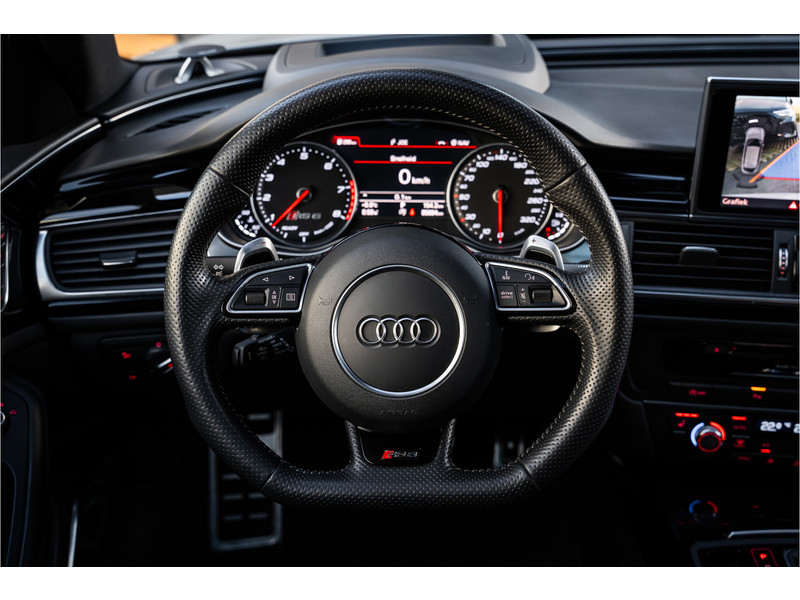 Deze Audi RS6 Avant bewijst haar klasse met een elegant uiterlijk en een comfortabele binnenruimte, onmiskenbaar een kwaliteitsauto uit Duitsland. Stijlvolle sportiviteit in uitstraling komt van de S-Line styling. De aandrijving van deze Audi wordt verzorgd door een achtcilinder benzinemotor en een automatische transmissie. Altijd al een voorkeur voor een lederen interieur gehad? Deze Audi RS6 Avant heeft het! Zit u goed? De stoelen zijn eenvoudig instelbaar dankzij de elektrische bediening met geheugen. Licht, luxe en gemak komen samen in de vorm van het elektrische bediende glazen panoramadak. Een praktische extra is de elektrisch bedienbare achterklep die opent en sluit met een druk op de knop. Deze Audi RS6 Avant heeft eigenlijk alles, zelfs een verwarmde achterbank. Daglicht bij nacht? De koplampen met matrix LED-verlichting zorgen ervoor. Verder is de Audi uitgerust met: 21 inch lichtmetalen velgen, sportonderstel, adaptief dempingsysteem, warmtewerend glas, dakspoiler en elektrisch inklapbare buitenspiegels.