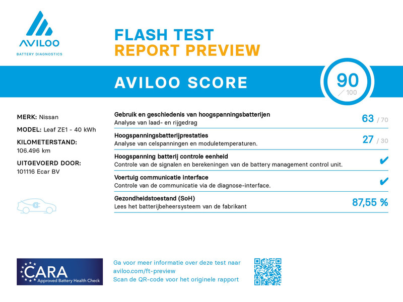 - | Stoelverwarming | Adaptive cruise control | Rondomzicht camera | SoH ( batterijtest ) 87,55 % score