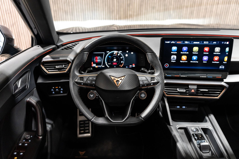 U rijdt gemakkelijk, comfortabel en zonder zorgen met deze Cupra Formentor. De aandrijving van deze Cupra wordt verzorgd door een viercilinder motor en een automatische transmissie. Deze Cupra Formentor heeft verwarmbare voorstoelen, voor zowel bestuurder als bijrijder. Natuurlijk zijn de sportstoelen super functioneel als het rechterpedaal ingetrapt wordt. Maar ook voor het uiterlijk doen ze veel! Daglicht valt vrij binnen door het elektrisch bediende glazen panoramadak. Een praktische extra is de elektrisch bedienbare achterklep die opent en sluit met een druk op de knop. Als de 'r' in de maand zit, komt zo'n verwarmd stuurwiel als geroepen! Verder is de Cupra uitgerust met: LED koplampen, extra getint glas, in delen neerklapbare achterbank, LED-achterlichten, verstelbare lendensteunen en snelheidsafhankelijke stuurbekrachtiging.