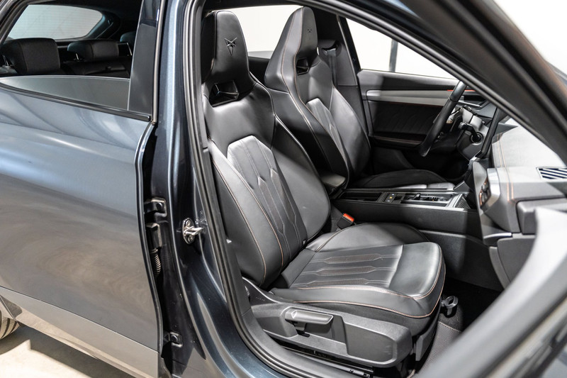 U rijdt gemakkelijk, comfortabel en zonder zorgen met deze Cupra Formentor. De aandrijving van deze Cupra wordt verzorgd door een viercilinder motor en een automatische transmissie. Deze Cupra Formentor heeft verwarmbare voorstoelen, voor zowel bestuurder als bijrijder. Natuurlijk zijn de sportstoelen super functioneel als het rechterpedaal ingetrapt wordt. Maar ook voor het uiterlijk doen ze veel! Daglicht valt vrij binnen door het elektrisch bediende glazen panoramadak. Een praktische extra is de elektrisch bedienbare achterklep die opent en sluit met een druk op de knop. Als de 'r' in de maand zit, komt zo'n verwarmd stuurwiel als geroepen! Verder is de Cupra uitgerust met: LED koplampen, extra getint glas, in delen neerklapbare achterbank, LED-achterlichten, verstelbare lendensteunen en snelheidsafhankelijke stuurbekrachtiging.