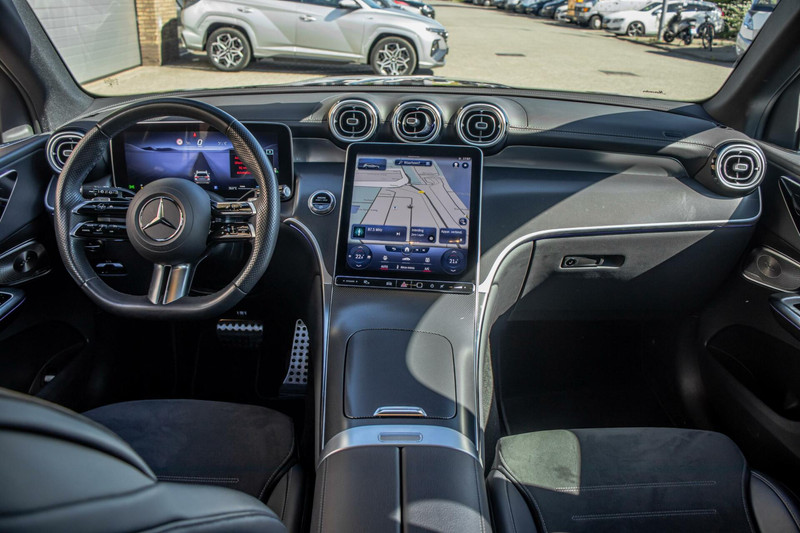 Deze GLC is uitgevoerd in strak zwart metallic en staat op fraaie 20 inch lichtmetalen velgen. De carrosserie is gepoetst en in perfecte conditie, waarbij het AMG Line-pakket zorgt voor een sportieve en dynamische uitstraling. Het panoramadak geeft het lijnenspel extra flair, terwijl de subtiele sfeerverlichting bijdraagt aan de premium beleving – ook van buitenaf een indrukwekkende verschijning.