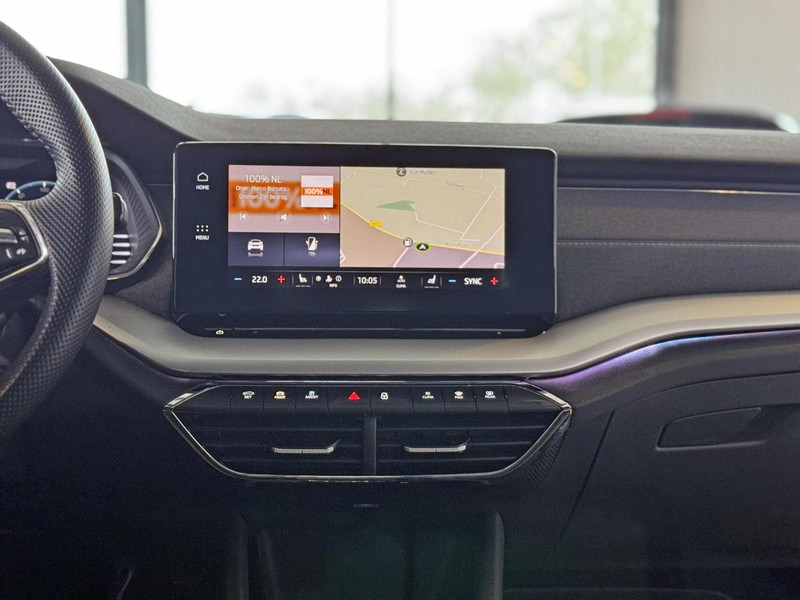 Zoals u mag verwachten van deze Skoda Octavia Combi is hij uitgerust met een reeks aan actieve veiligheidssystemen. Indien u onbedoeld de rijstrook lijkt te verlaten, reageert het Lane-keeping systeem meteen en corrigeert. Forward collision warning waarschuwt voor een kop-staart botsing. Bij concentratieverlies en toenemende vermoeidheid van de bestuurder, geeft de auto een sterk signaal om u weer bij de les te houden. Hierdoor kunnen veel ongelukken voorkomen worden. In deze Skoda vinden we verder een head-up display, dodehoekdetectie, hill hold functie, autonoom remsysteem en bandenspanningcontrolesysteem.
