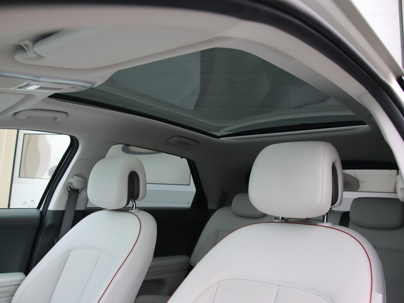 Hij biedt volop ruimte, deze Hyundai IONIQ 5, en dankzij zijn elektrische aandrijving is er ook plenty vermogen voor een dynamische rijstijl. Stil en stevig optrekken zonder extra uitstoot? De elektromotor zorgt ervoor! En o ja, het lederen interieur is ook een vermelding waard! Ga samen met uw bijrijder lekker zitten in de verwarmbare voorstoelen en laat jullie bloedsomloop stimuleren door de massagefunctie. Zit u goed? De stoelen zijn eenvoudig instelbaar dankzij de elektrische bediening met geheugen. Een handige voorziening op deze auto is de elektrische achterklep die u op afstand kunt openen. Onderweg heeft u extra veel te zien dankzij het glazen panoramadak. Met de verwarmbare achterbank zitten uw achterpassagiers er net zo behaaglijk bij als u. Tot de uitrusting van deze Hyundai behoren ook 20 inch lichtmetalen velgen, Full LED koplampen, donker getint glas achter, in delen neerklapbare achterbank, LED-achterlichten en verstelbare lendensteunen.