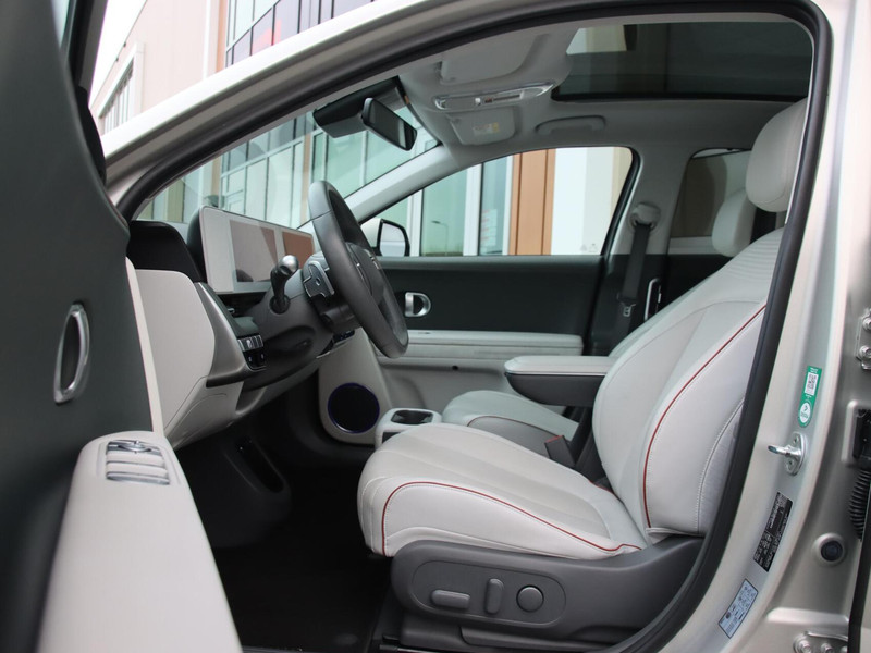 Hij biedt volop ruimte, deze Hyundai IONIQ 5, en dankzij zijn elektrische aandrijving is er ook plenty vermogen voor een dynamische rijstijl. Stil en stevig optrekken zonder extra uitstoot? De elektromotor zorgt ervoor! En o ja, het lederen interieur is ook een vermelding waard! Ga samen met uw bijrijder lekker zitten in de verwarmbare voorstoelen en laat jullie bloedsomloop stimuleren door de massagefunctie. Zit u goed? De stoelen zijn eenvoudig instelbaar dankzij de elektrische bediening met geheugen. Een handige voorziening op deze auto is de elektrische achterklep die u op afstand kunt openen. Onderweg heeft u extra veel te zien dankzij het glazen panoramadak. Met de verwarmbare achterbank zitten uw achterpassagiers er net zo behaaglijk bij als u. Tot de uitrusting van deze Hyundai behoren ook 20 inch lichtmetalen velgen, Full LED koplampen, donker getint glas achter, in delen neerklapbare achterbank, LED-achterlichten en verstelbare lendensteunen.