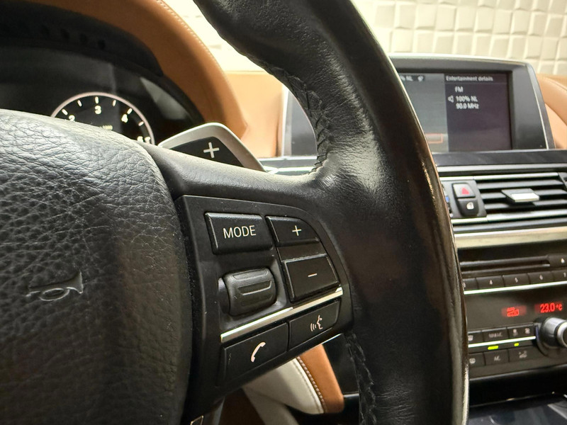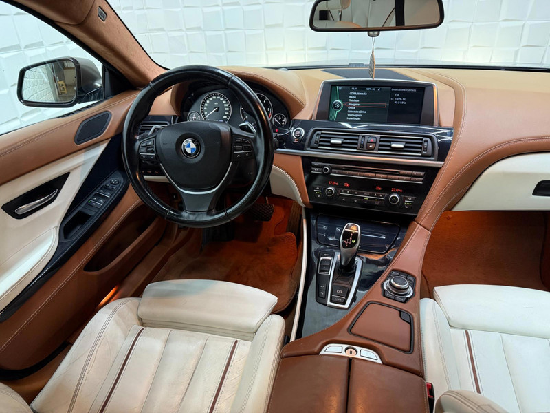 Auto's als deze BMW 6-serie Gran Coupé bieden tegelijk rijdynamiek, comfort en degelijkheid. De aandrijving wordt verzorgd door een zescilinder motor en een automatische transmissie. Binnenin zien we een fraai afgewerkt lederen interieur. Neem plaats op de comfortabele stoelen. Dankzij de elektrische bediening en het geheugen is het eenvoudig om hierin de beste zitpositie te vinden. In het donker zorgt de xenonverlichting voor een goed zicht op de weg. Met het start-stopsysteem weet u zeker dat u alleen brandstof verbruikt als u echt rijdt. In deze BMW profiteert u onder andere ook van: 17 inch lichtmetalen velgen, elektrisch inklapbare buitenspiegels, verstelbare lendensteunen, elektrisch bedienbare ramen achter, metallic lak en variabele stuurbekrachtiging.