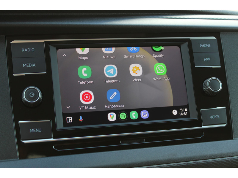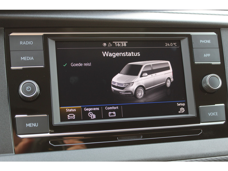 Een nieuwe Volkswagen Transporter met originele 150PK motor automaat, achteruitrijcamera, parkeersensoren achter, airco, cruise en app connect.