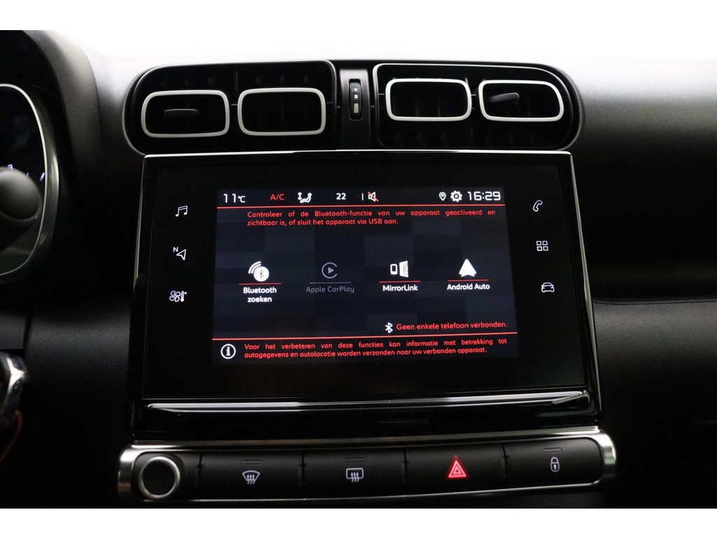 De conditie van deze auto is 24/7 inzichtelijk dankzij Connected Services. De vele zenders die u heeft met DAB-radio worden fantastisch weergegeven via het A-klasse audiosysteem. Te weinig afstand tussen u en de achterligger? De sensoren registreren het direct en de achteropkomend verkeer waarschuwing geeft een signaal. Met automatische airconditioning hoeft u alleen de gewenste temperatuur in te stellen. Het systeem doet de rest. Boem is ho? Niet bij deze Citroen C3 Aircross. De piepjes van de parkeersensoren waarschuwen u op tijd voor obstakels. U bent in deze Citroen ook voorzien van regensensor, cruise control, lederen stuur, centrale deurvergrendeling met afstandsbediening en boordcomputer.