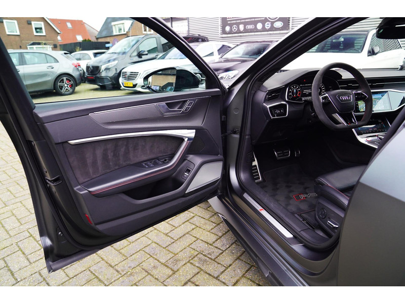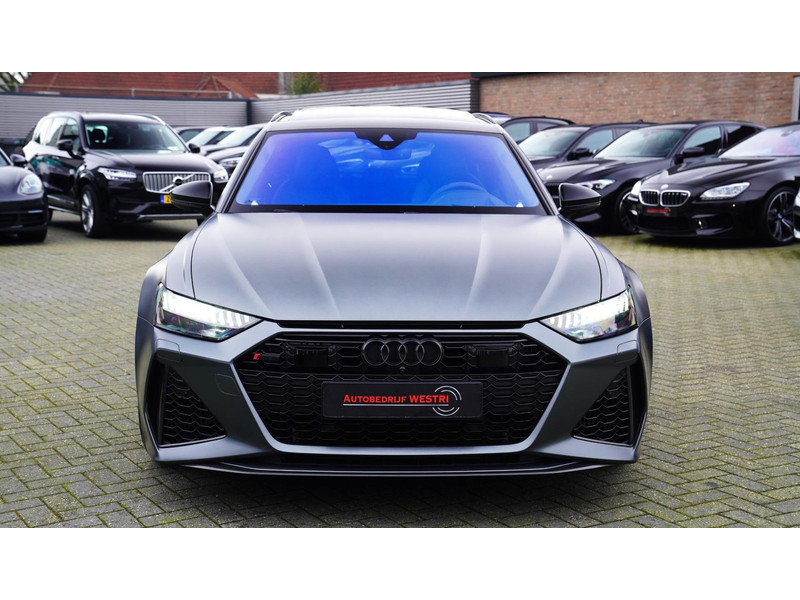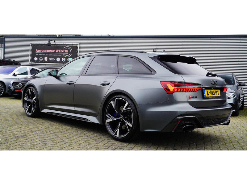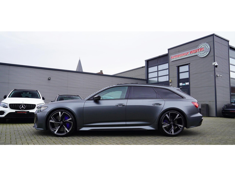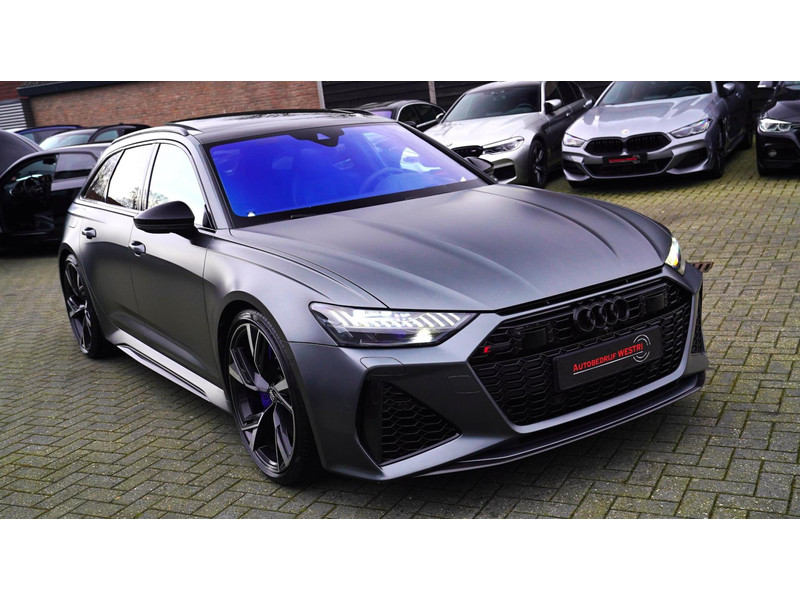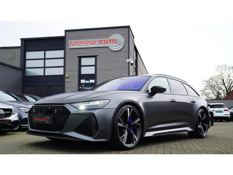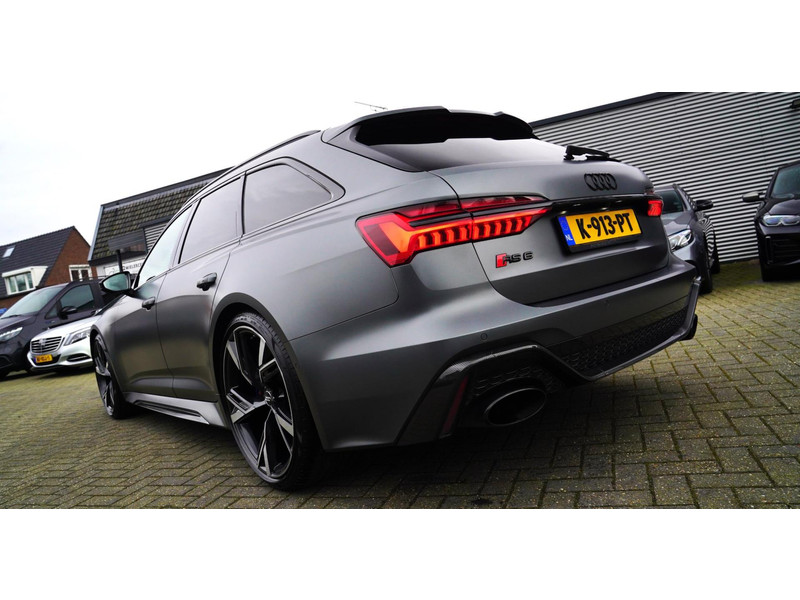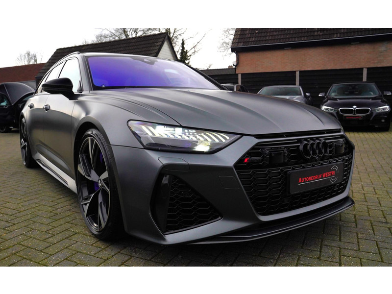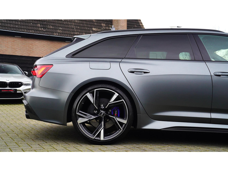 Nieuw op voorraad, Deze Brute Audi RS6 4.0 TFSI Quattro Dynamic PLUS uit het jaar 2020! Uitgevoerd met een mat grijze kleur, origineel af fabriek. Interieur is uitgevoerd in de kleur zwart met expressrode stiksels. Echt een unieke samenstelling.
