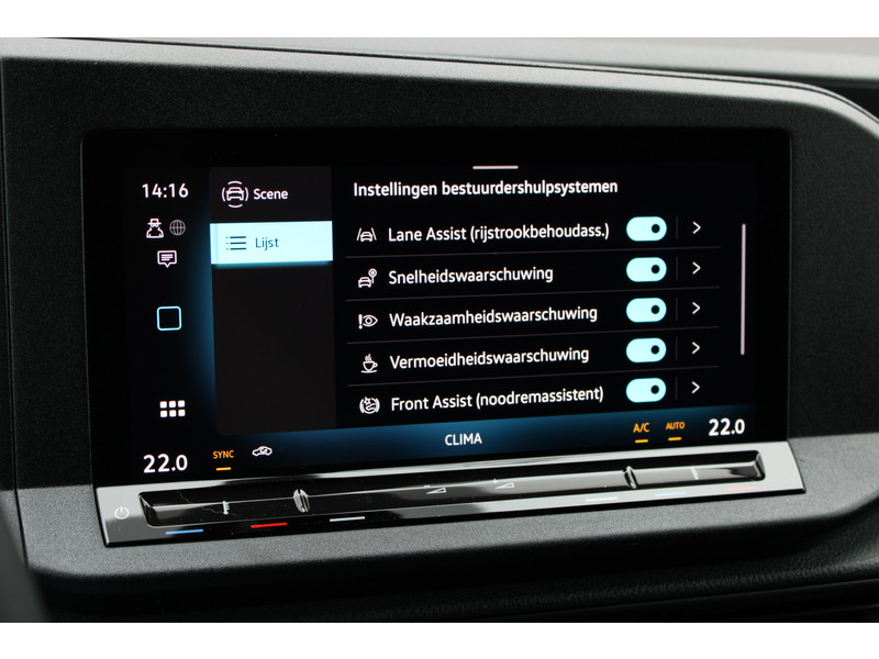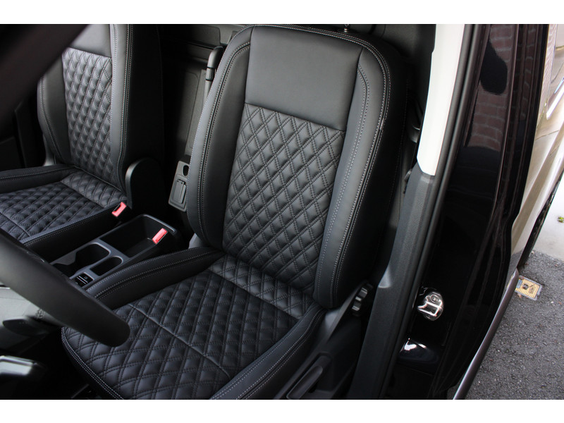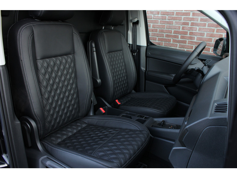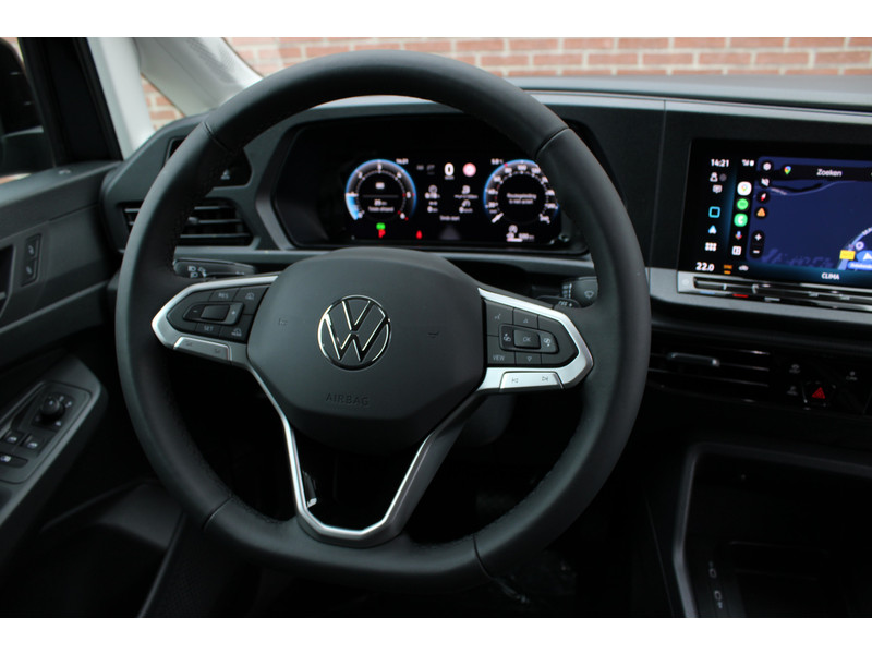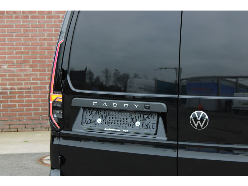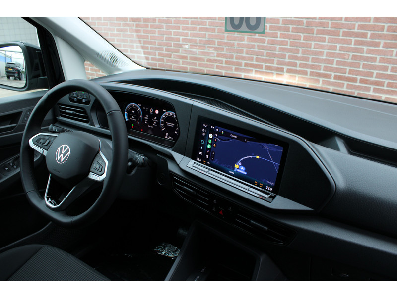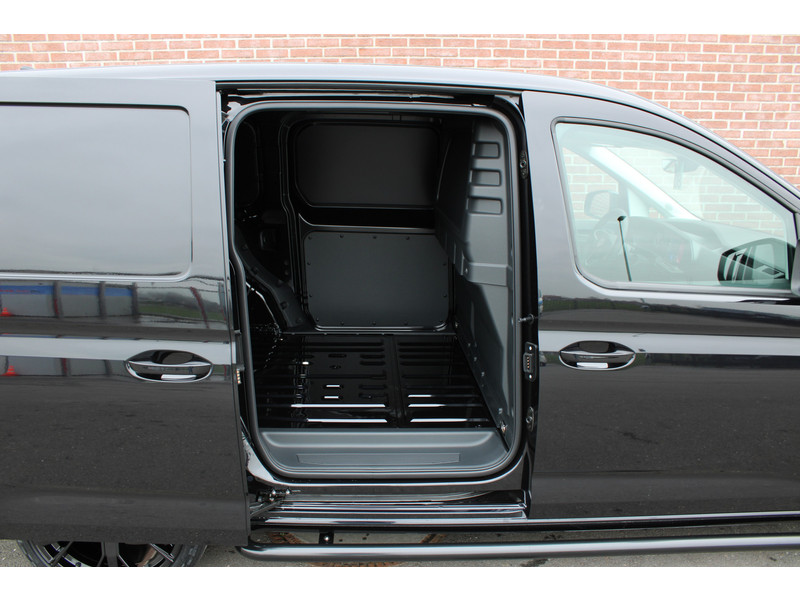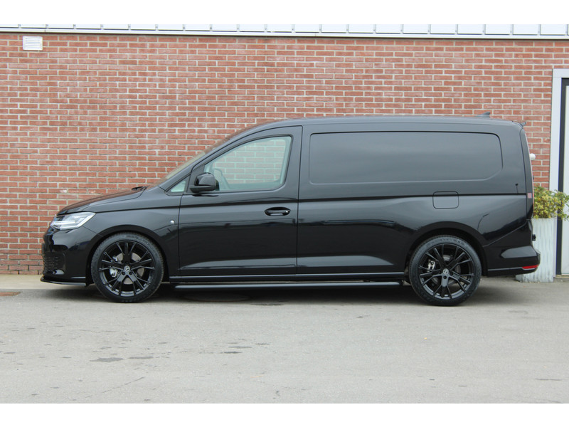 Een nieuwe Volkswagen Caddy Maxi met originele 122PK motor met automaat en een enkele schuifdeur met onder andere, Verlaagd onderstel, Front lip, Spoiler, 19 Inch lichtmetalen velgen, draadloze Apple carplay & Android auto, Lane assist en een mulitfunctioneel lederen stuurwiel..