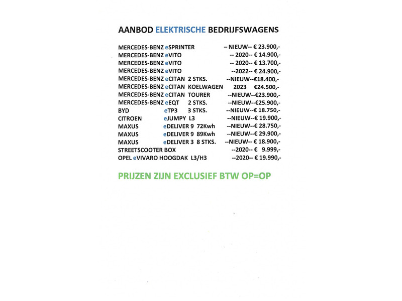 Dit is de scherpe internet meeneemprijs Exclusief BTW Ook bieden wij de mogelijkheid van gespreide betaling in samen werking met de grootste autofinancier van Nederland - ook kunnen wij als service u helpen met uw autoverzekering , Wilt U Zelf bepalen wat u wilt betalen per maand kijk dan op de website van www.autodebruin.nl bij de knop /Financiering . Innovatieve toptechniek en een uitgesproken karakter. De BYD is een onderscheidende auto met een elektrische aandrijflijn. Stil en stevig optrekken zonder extra uitstoot? De elektromotor zorgt ervoor ! 45 Kwh Batterij en een WLTP Range van 230 Km ! KOSTEN RIJKLAAR MAKEN INCL AFLEVERINGS BEURT € 699,- Al onze verkopen zijn gebaseerd op business to business (B2B) zonder garantie , Particuliere verkoop is uiteraard mogelijk, vraag naar de mogelijkheden , garantie is mogelijk tegen meerprijs vraag naar de mogelijkheden.