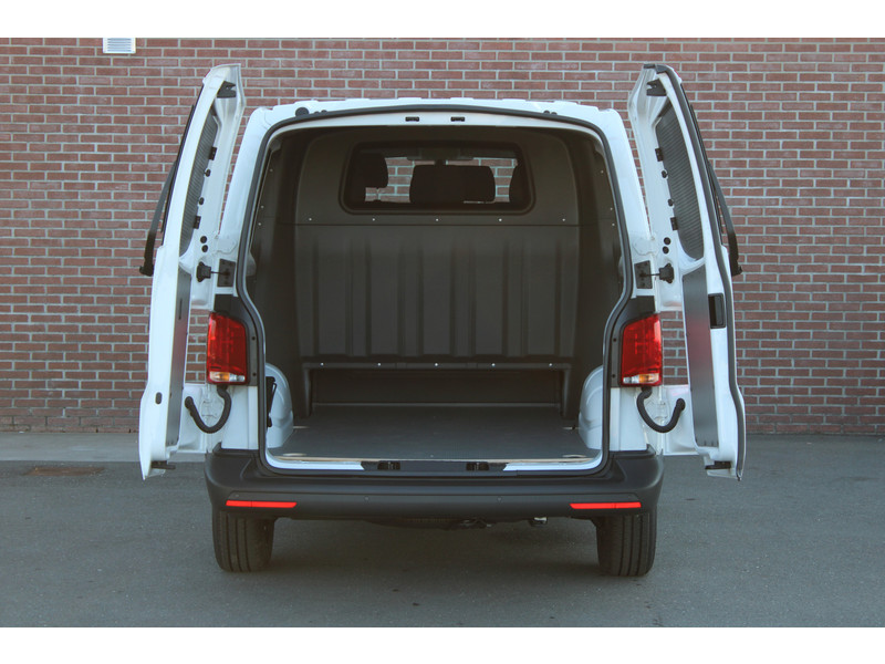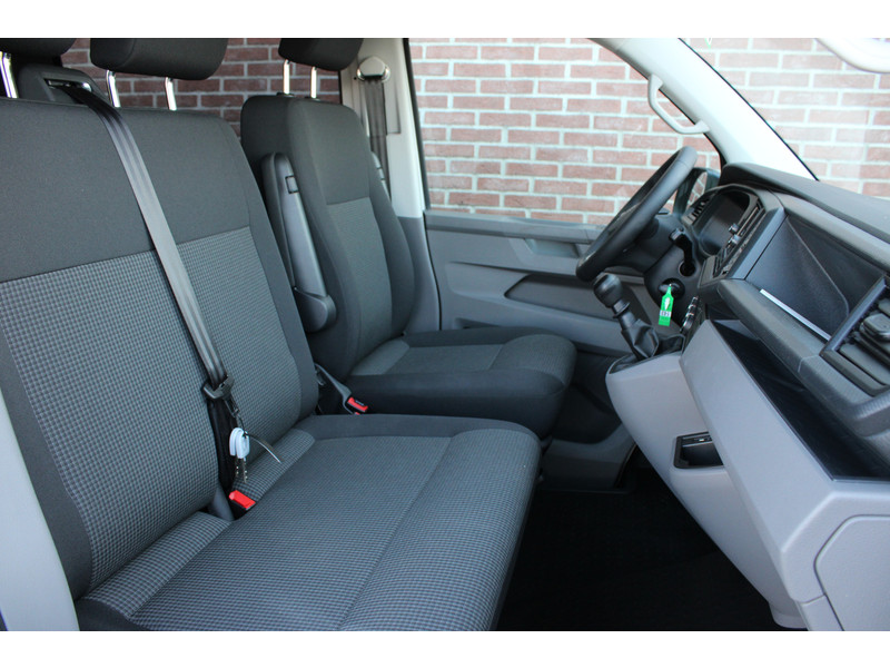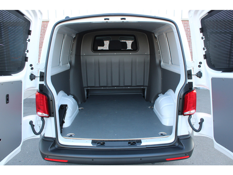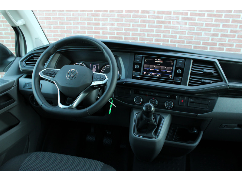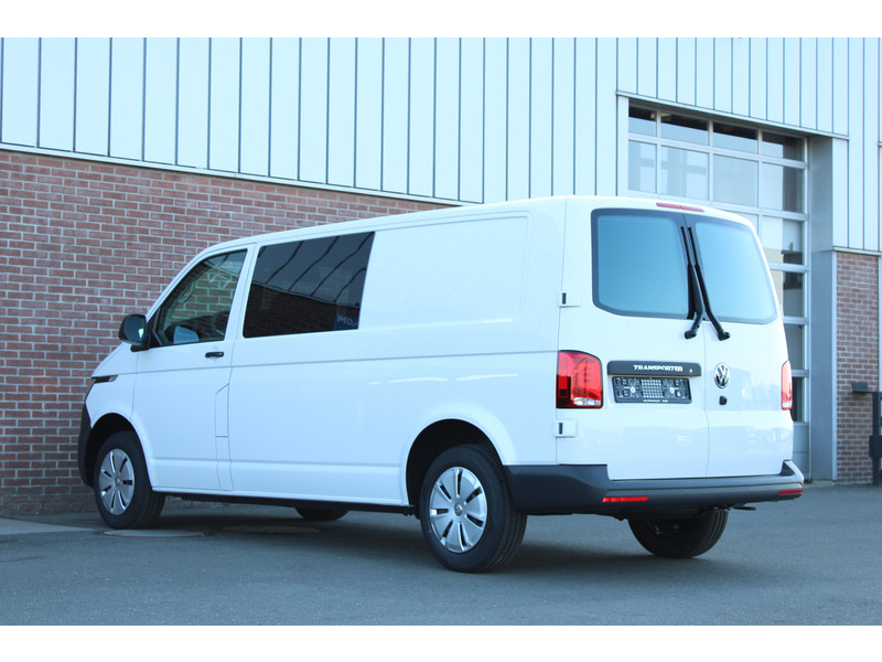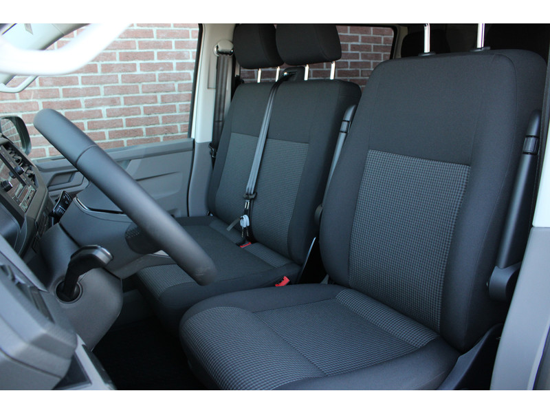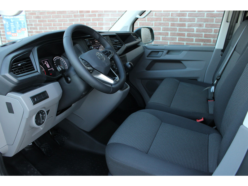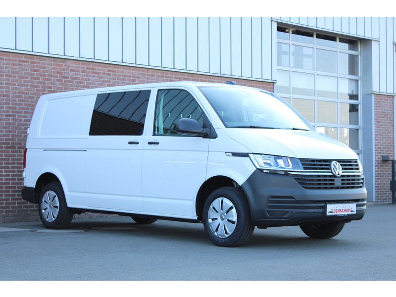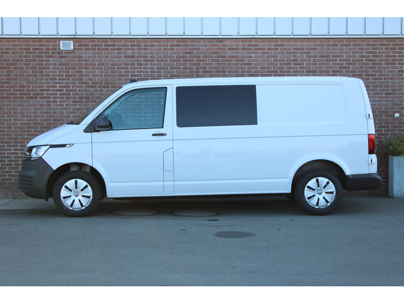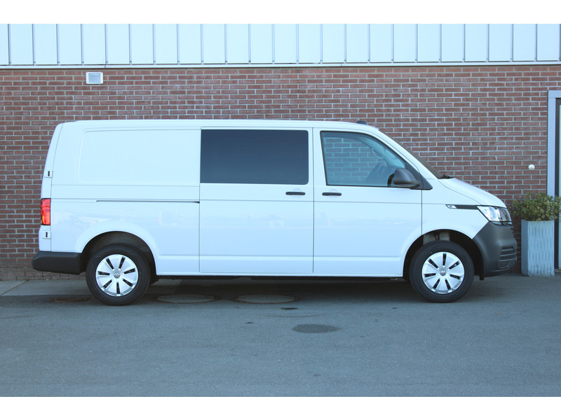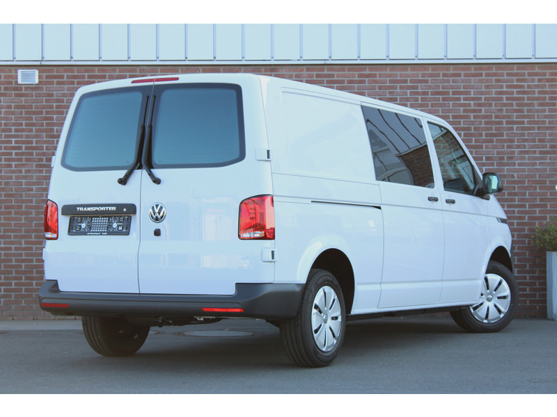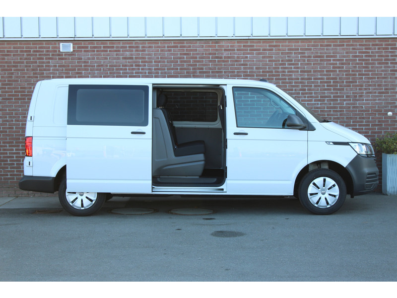 Een nieuwe Volkswagen Transporter dubbelcabine met originele 150PK motor met 6 versnellingen handgeschakeld en een enkele schuifdeur met o.a. Cruise control, Achteruitrijcamera, parkeersensoren achter, apple carplay en android auto en stoelverwarming.